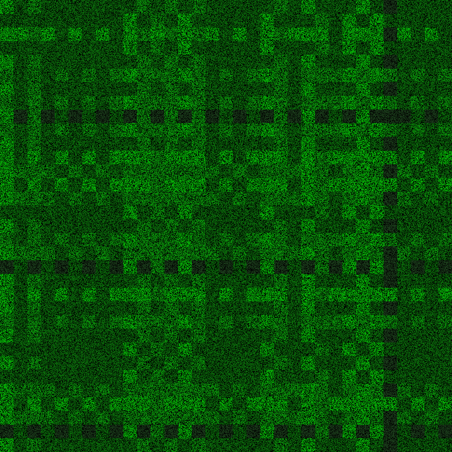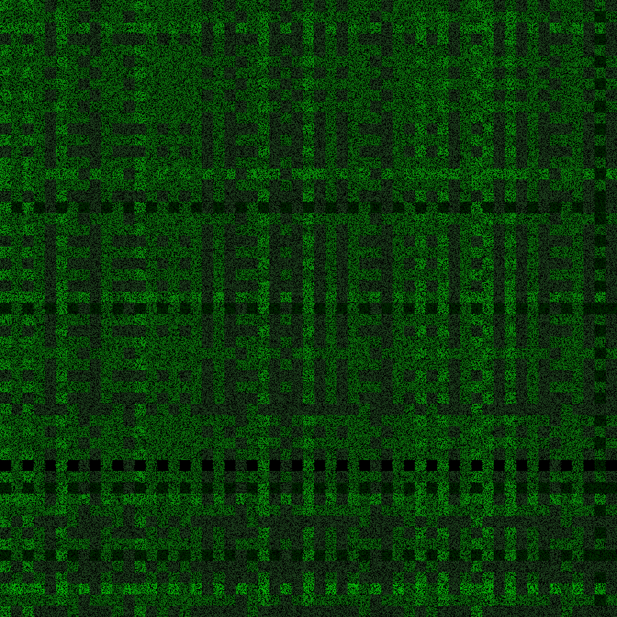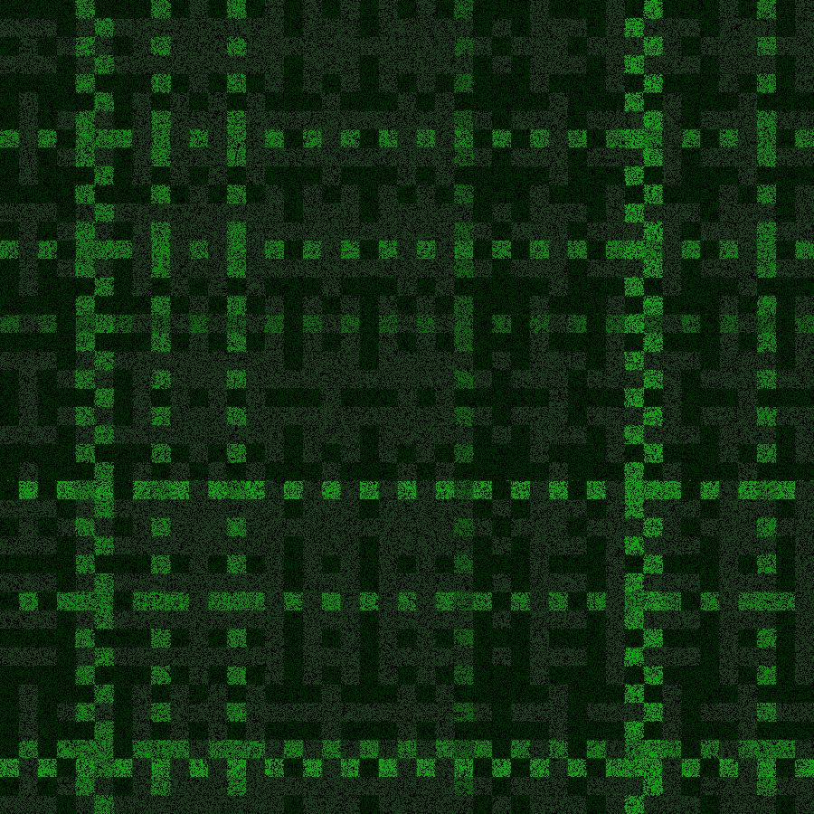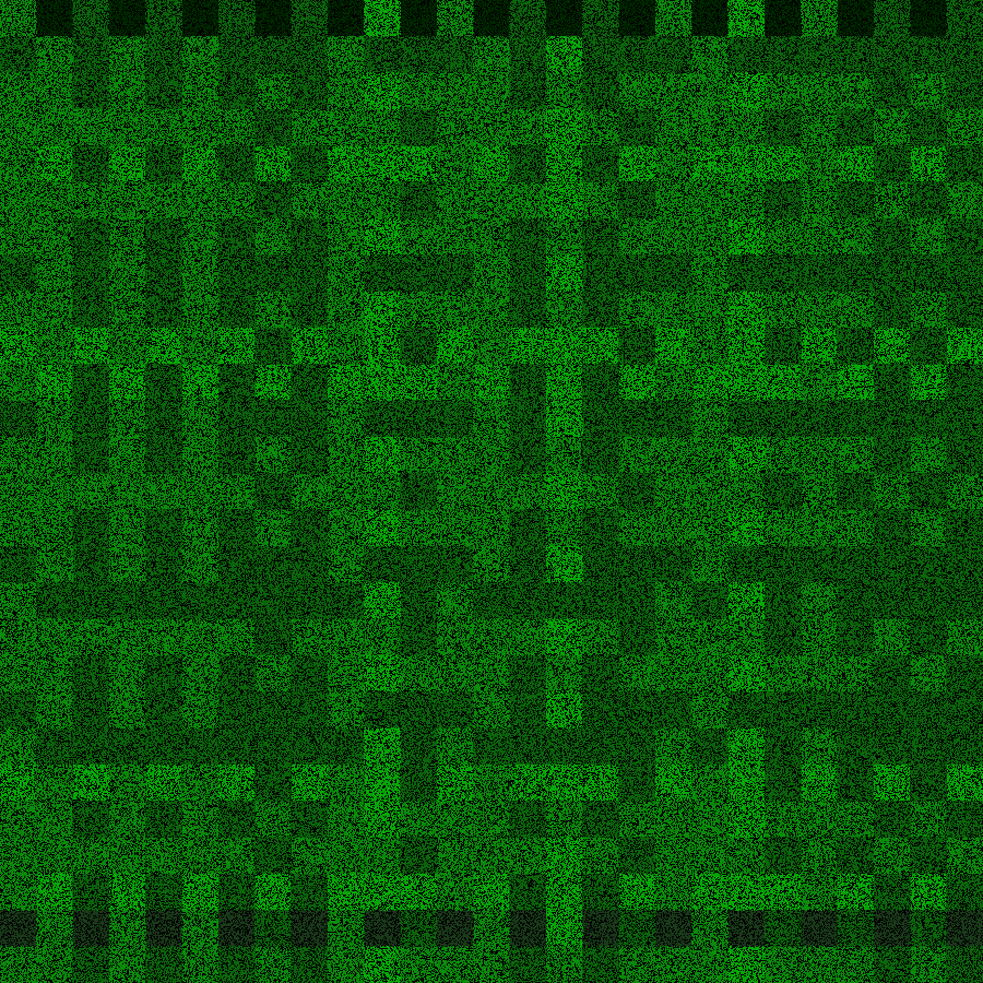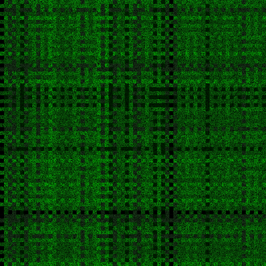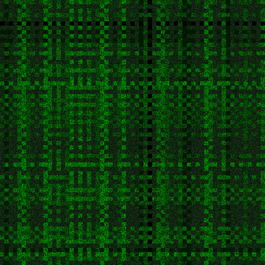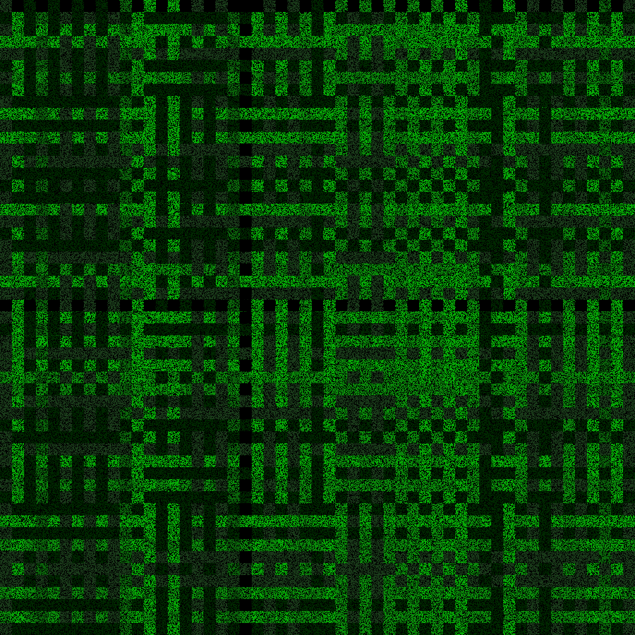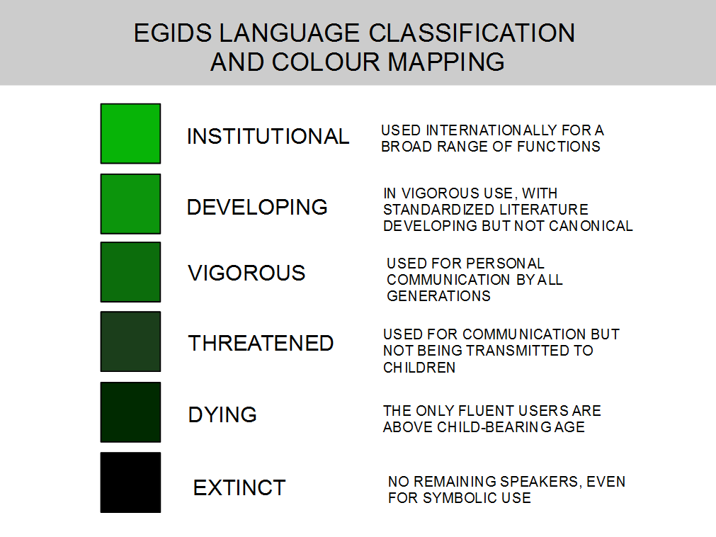 Each of these images, conceptualized as a small swatch of woven cloth, represents the language profile for an individual country. Every one of the “threads” composing this metaphorical weaving stands in for a language, its color corresponding to the health of that language on a six-point scale of black (extinct) through bright green (what is coined "institutional"). Since each swatch is kept the same size, the individual threads will be smaller in countries where many languages are spoken, and much larger in countries with less language diversity. The combined effect of colour tone and weaving density offers a snapshot view of the language landscape of a country.
