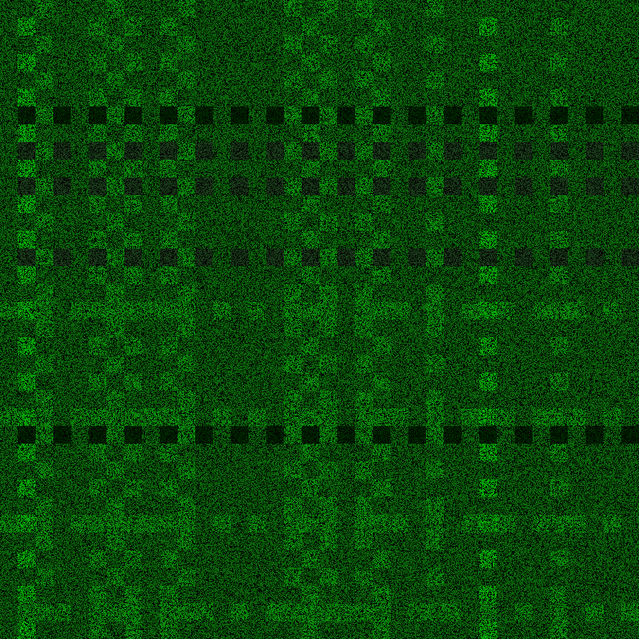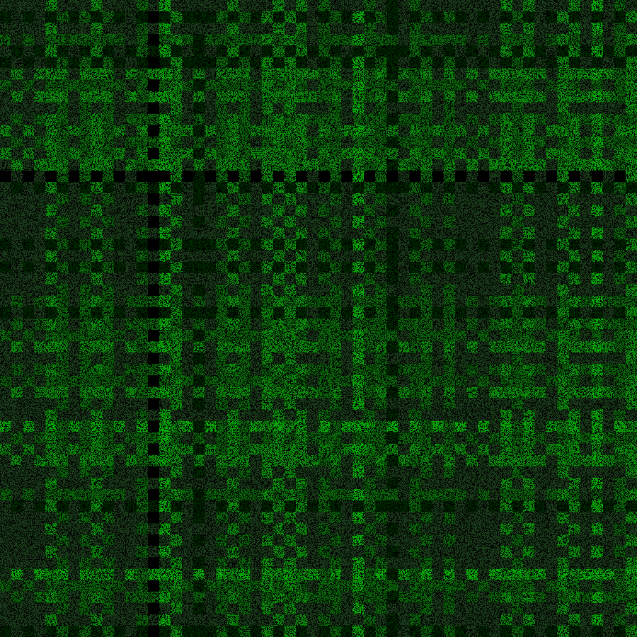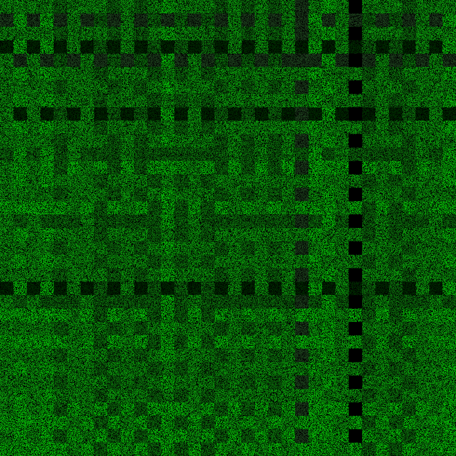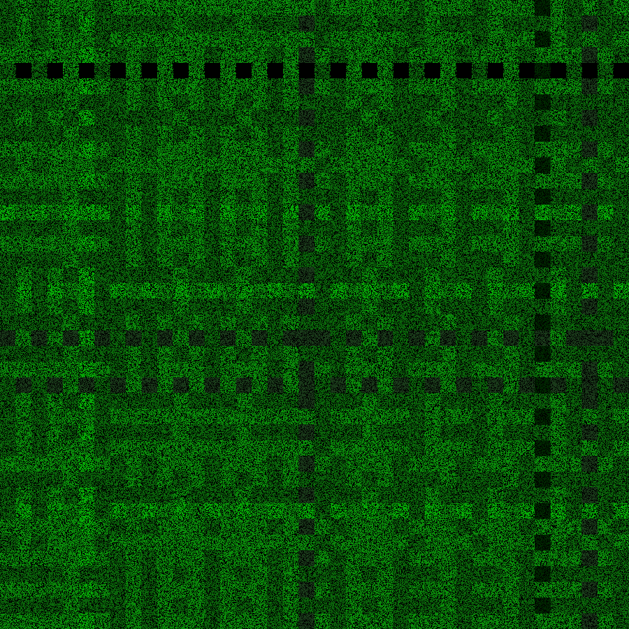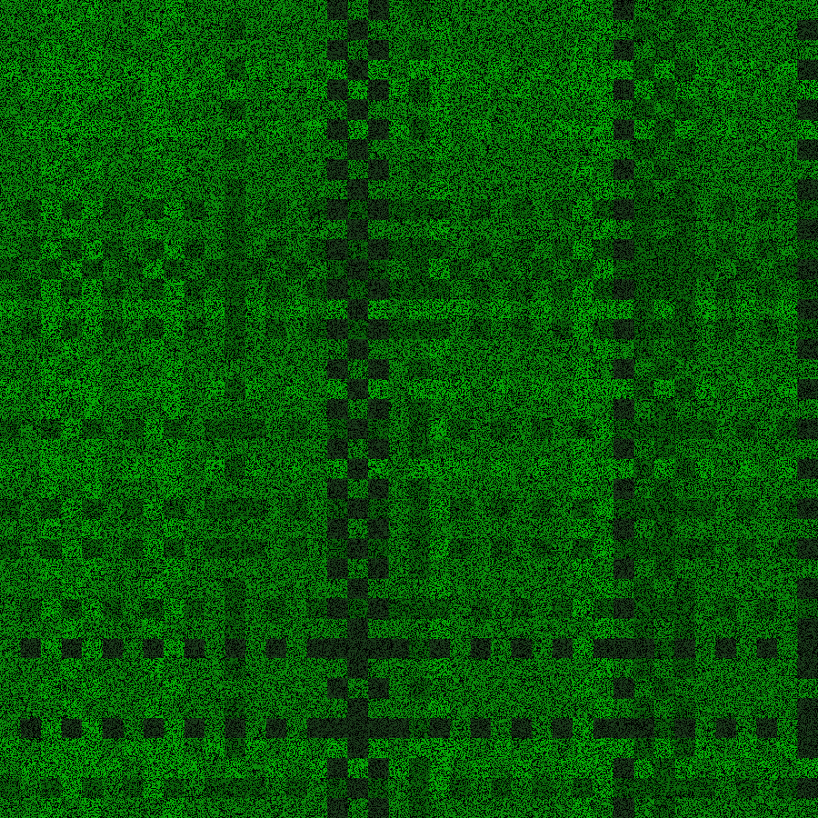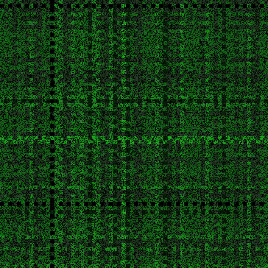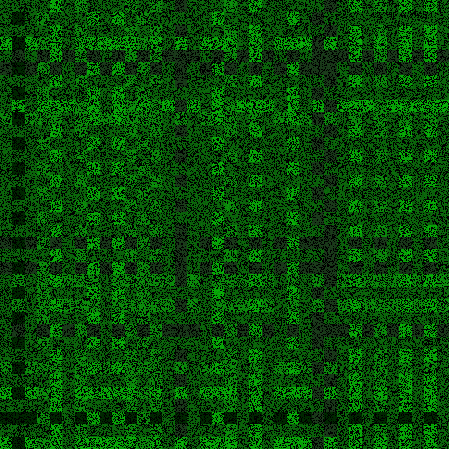Each of these images, conceptualized as a small swatch of woven cloth, represents the language profile for an individual country. Every one of the “threads” composing this metaphorical weaving stands in for a language, its color corresponding to the health of that language on a six-point scale of black (extinct) through bright green (what is coined "institutional"). Since each swatch is kept the same size, the individual threads will be smaller in countries where many languages are spoken, and much larger in countries with less language diversity. The combined effect of colour tone and weaving density offers a snapshot view of the language landscape of a country.